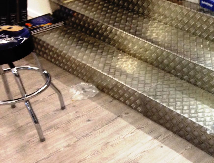 Habillage marches escalier magasin aluminium damier ép.1.5/2 mm