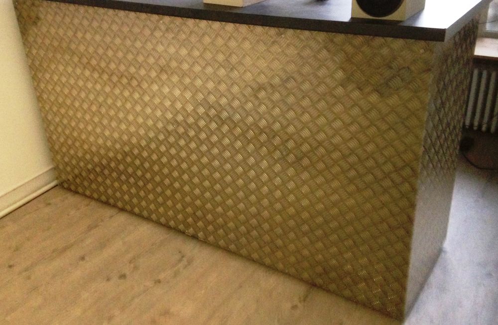 Habillage comptoir magasin aluminium damier ép.1.5/2 mm